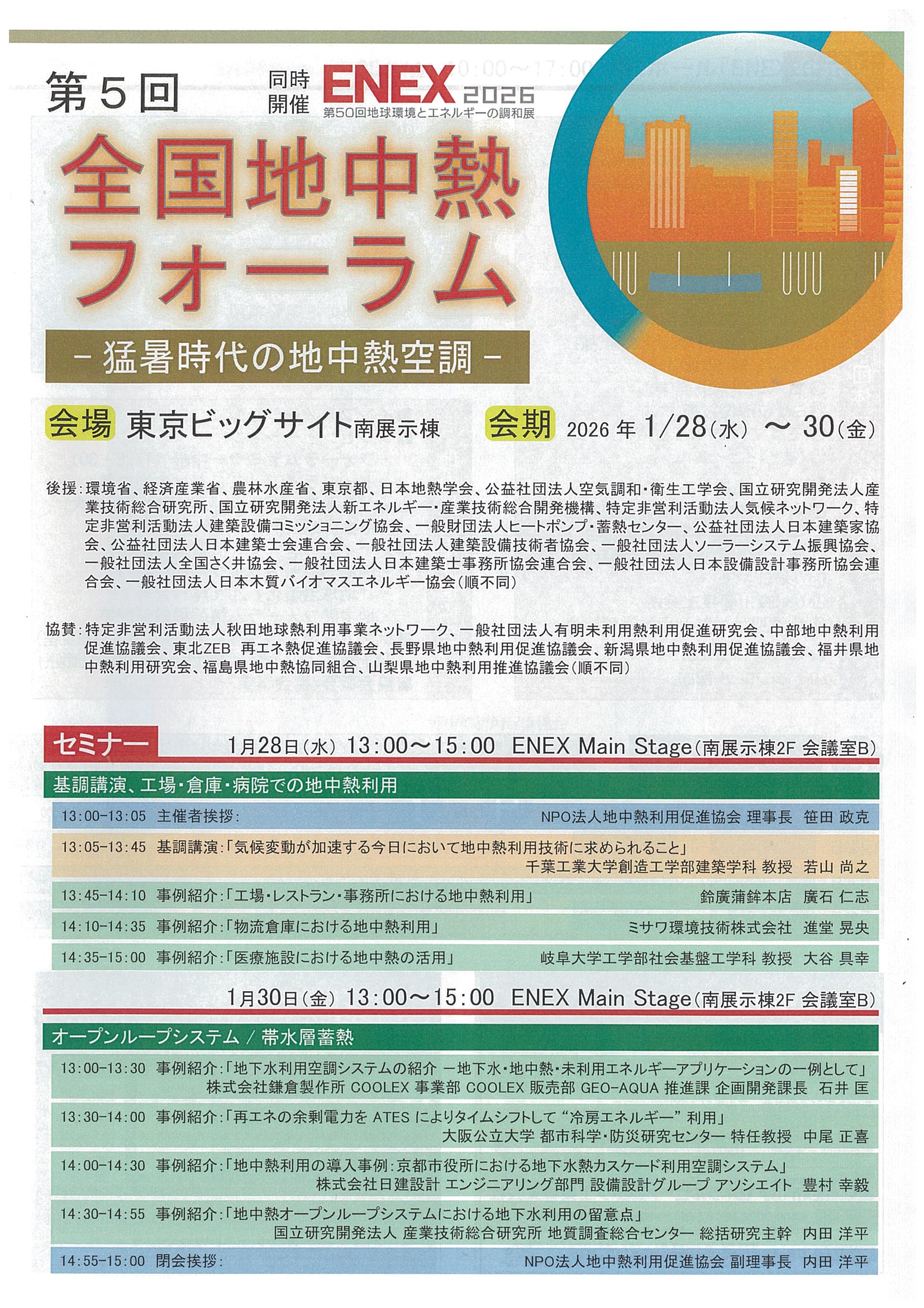 ◆第5回全国地中熱フォーラムも同時開催となっております。